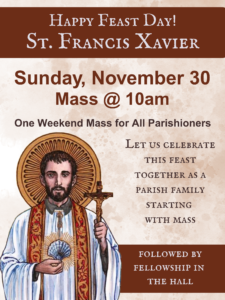 St. Francis Xavier Catholic Church is complete! All we are missing is YOU. Come and see our beautiful new church when you join us for Mass on Saturdays at 4 pm and Sundays at 9 am and 11 am. We look forward to welcoming your family into our new parish home!